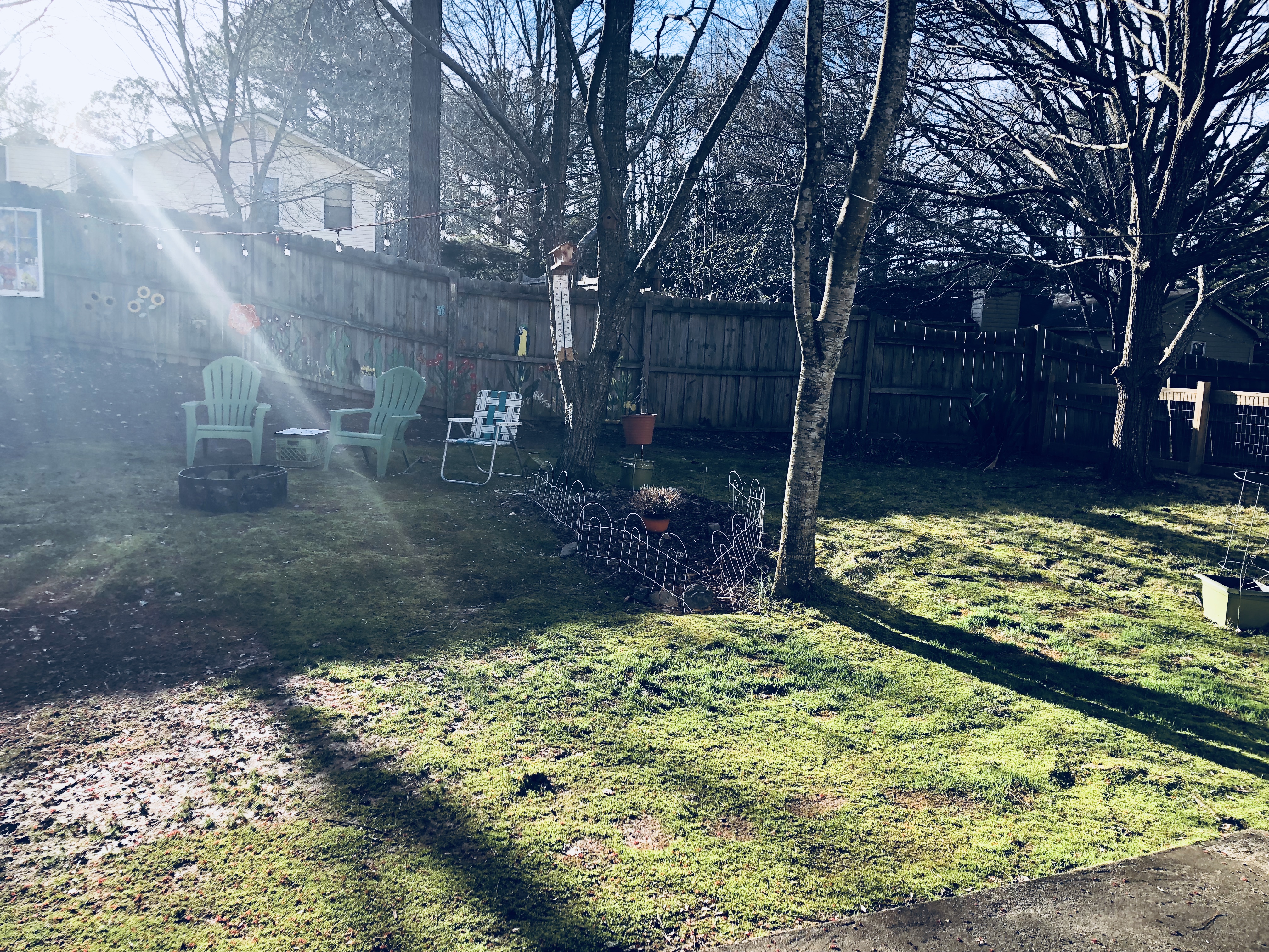 As I sat looking out The Studio window in late afternoon watching the sun go down, I discovered something. I discovered those small things that make artists set up and take notice. In my small backyard were thousands upon thousands of small minute pictures just waiting to be drawn or painted. I saw the buds of the chestnut tree and the red birds chasing the squirrels away from the bird feeder. I saw the chipmunk run under the privacy fence and dog stick her nose under that same fence following it’s smell. I noticed the half full bird feeder and new patch of grass bursting through the soil in search of sunlight. Shadows everywhere, more then I could possibly count.